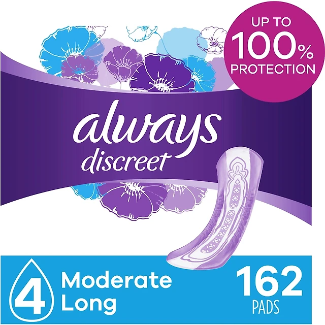 Discreet Moderate Long Incontinence Pads, 54 Count