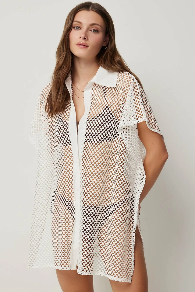 Ardene Crochet Back Swim Cover Up in White | Polyester/Cotton