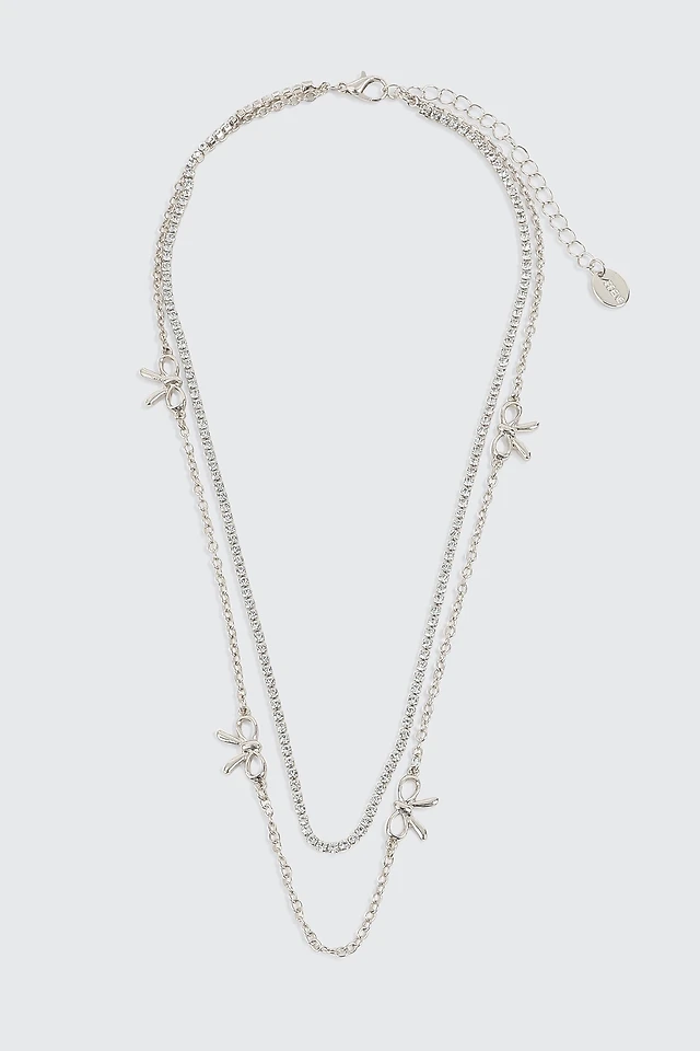 Ardene Two-Row Bow & Bead Necklace in Medium Blue