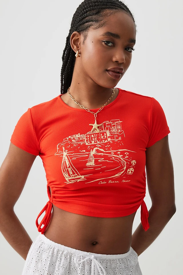 Ardene Ultra Crop Graphic T-Shirt with Side Ruching in | Size | Polyester/Elastane | Eco-Conscious
