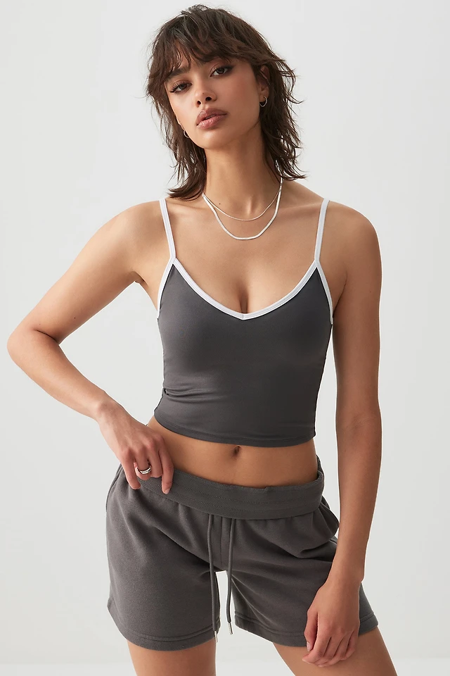 Ardene Ultra Crop Contrast Trim Tank Top in Saltstone Grey | Size | Polyester/Elastane
