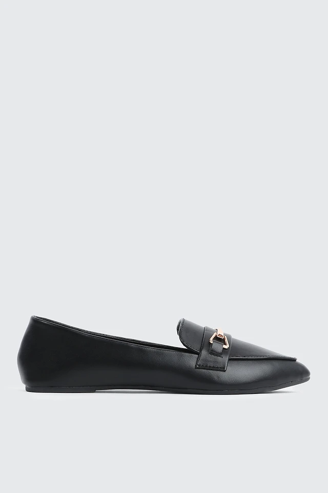 Ardene Faux Suede Ballet Flats with Braided Detail in Black | Size