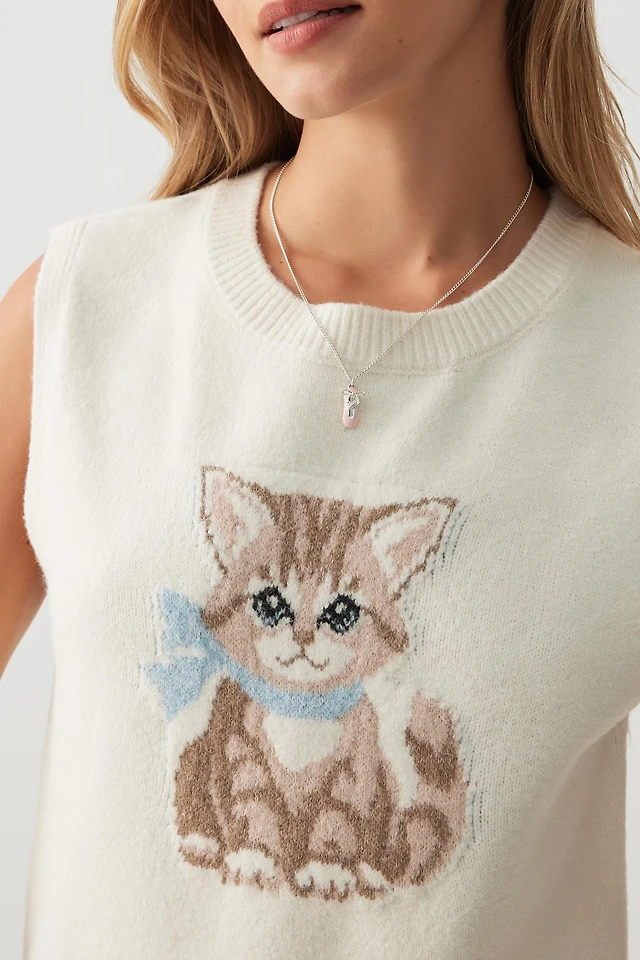 Ardene Printed Sweater Vest in White | Size | Polyester/Nylon/Spandex