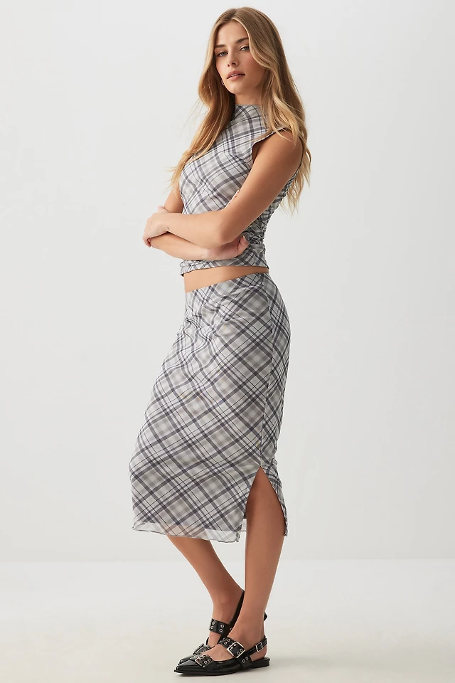 Ardene Printed Mesh Midi Skirt in Grey | Size | Polyester/Spandex