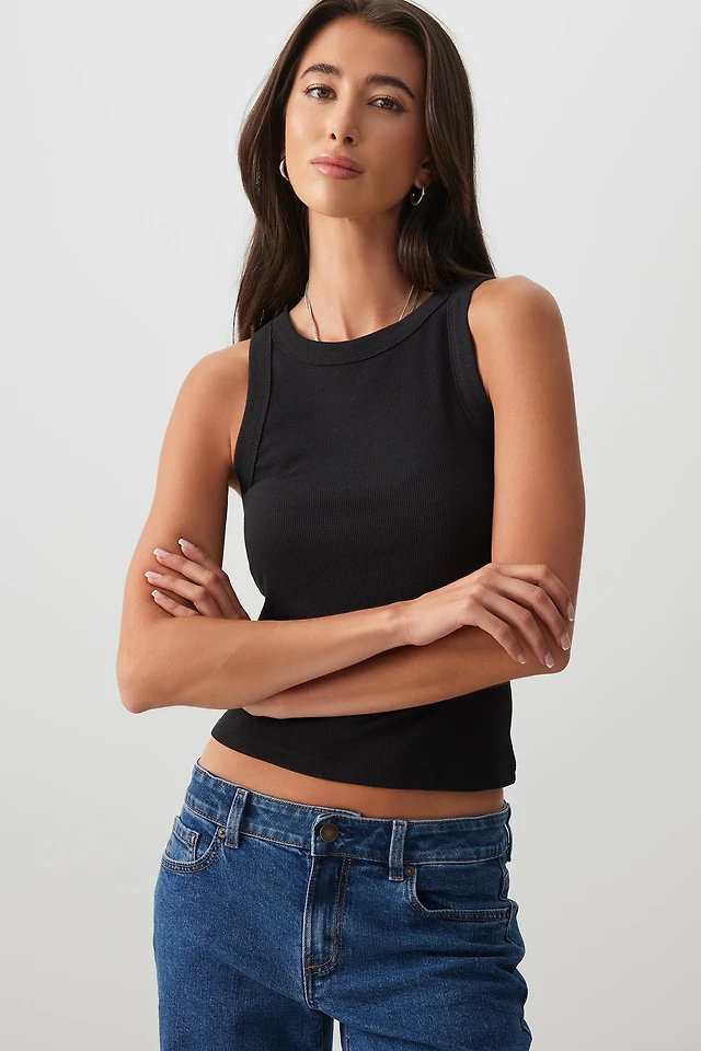 Ardene Basic Rib Scoop Neck Tank Top in | Size | Cotton/Elastane | Eco-Conscious