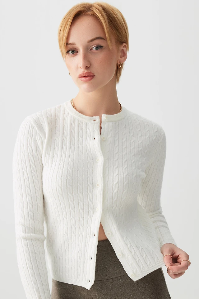Ardene Short Cable Knit Cardigan in | Size | Polyester/Nylon