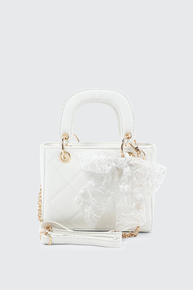 Ardene Small Tote Bag with Bow Detail in Off-White | Faux Leather/Polyester