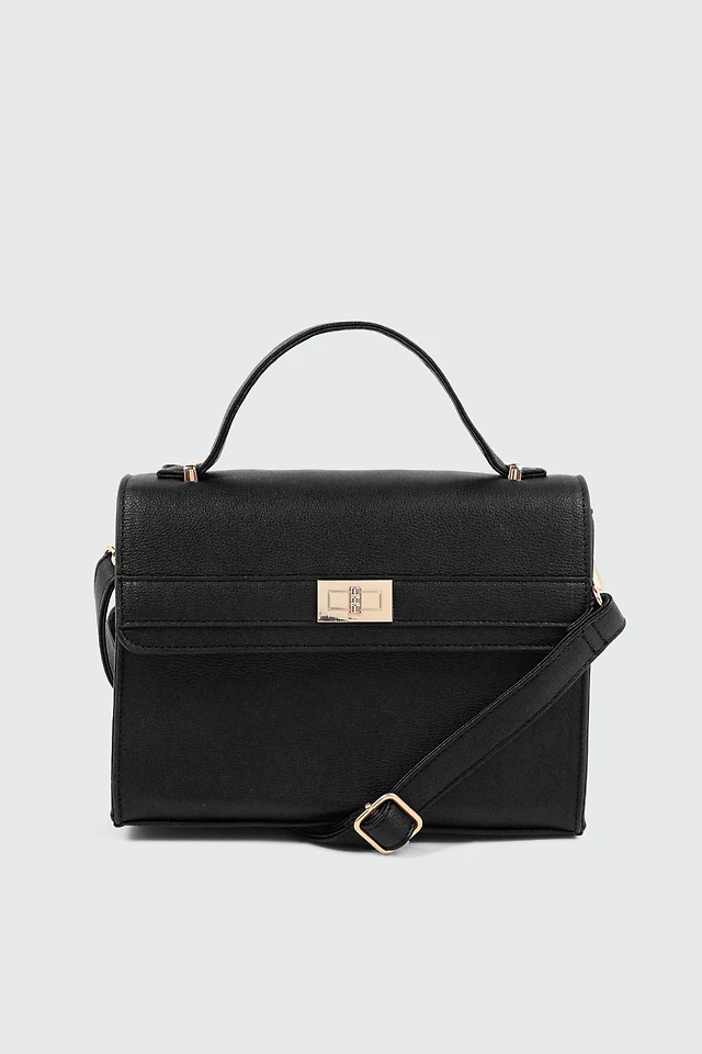 Ardene Turn Lock Shoulder Bag in | 100% Recycled Polyester/Faux Leather | Eco-Conscious