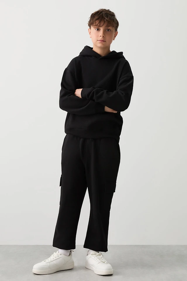Ardene Kids Cargo Sweatpants in Dark Grey | Size | Polyester/Cotton | Fleece-Lined