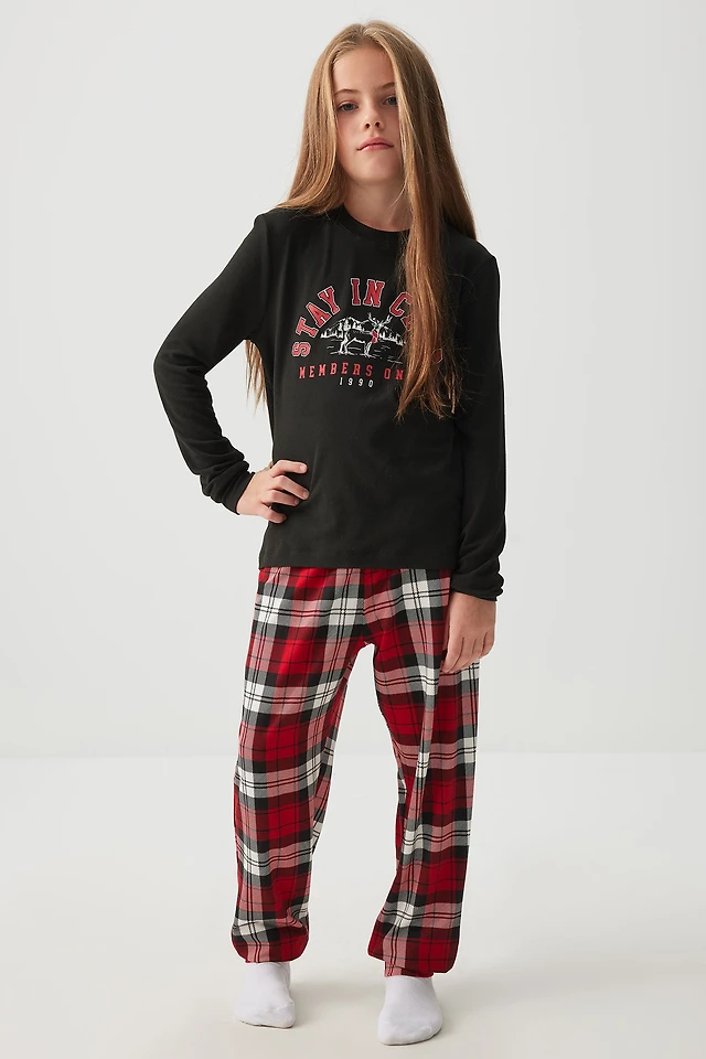 Ardene Kids Long Sleeve PJ Set in Red | Size | Polyester/Elastane | Eco-Conscious