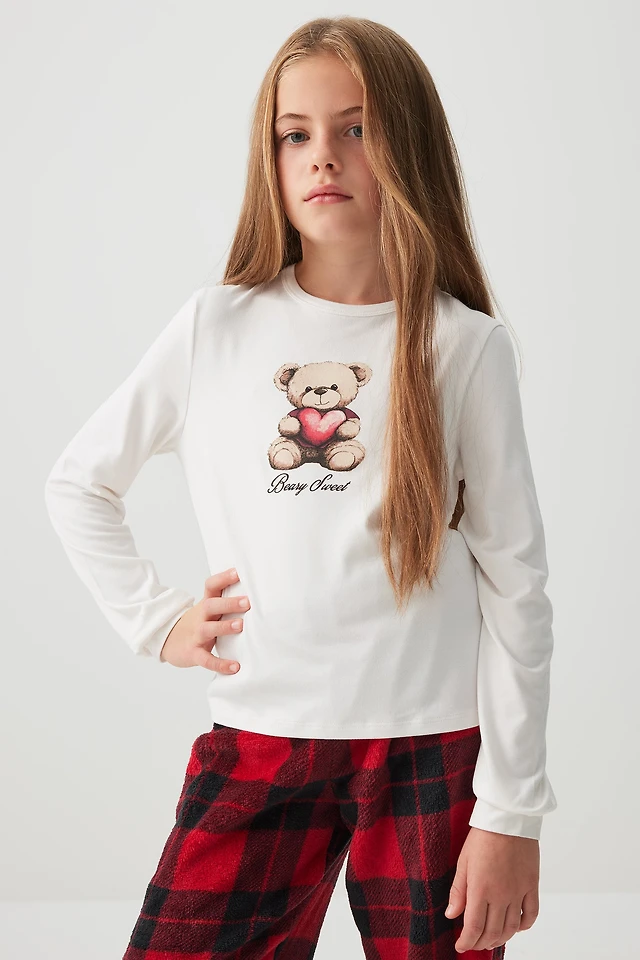 Ardene Kids Long Sleeve PJ Set in Off-White | Size | Polyester/Elastane | Eco-Conscious