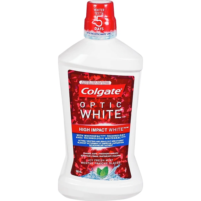 Colgate Optic White Icy Fresh Mint Alcohol Free Mouthwash, 946 mL