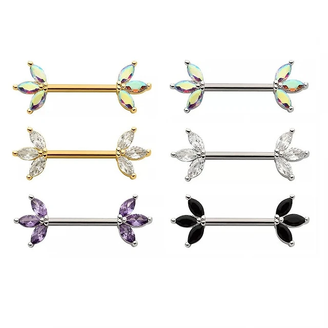 Barra para pezones con 7 gemas y cuentas engastadas en bisel