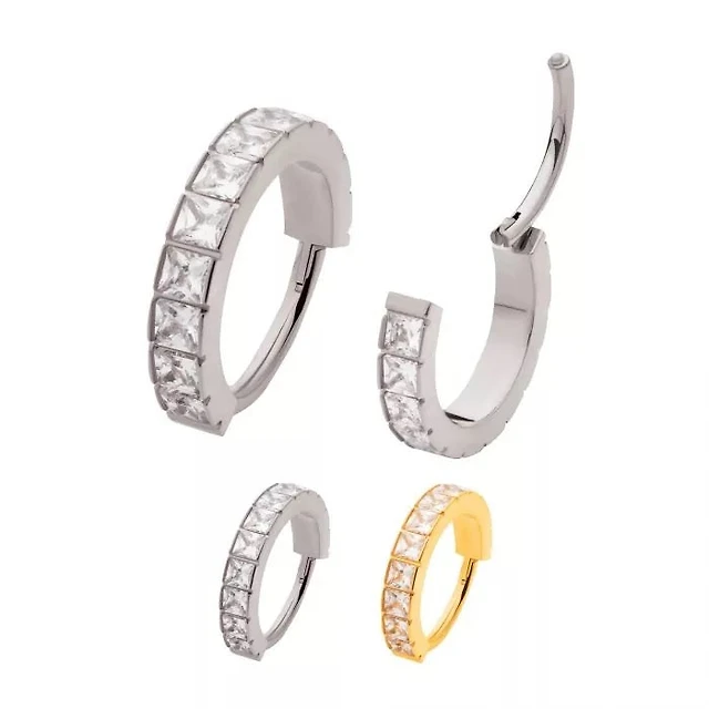 16g Hinged Hoop With All Around Clear Gems
