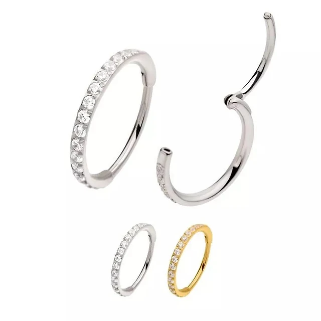 Aro con bisagras de 18 g gemas transparentes alrededor
