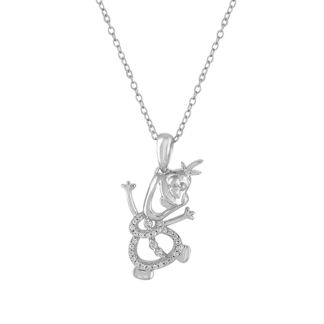 Enchanted Disney Sterling Silver 0.09CTW Apple Diamond & Garnet Necklace