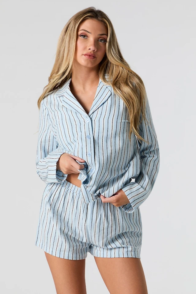 Printed Button-Up Top & Short 2 Piece Pajama Set