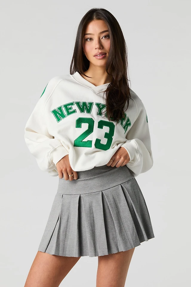 Embroidered Pocket Corduroy Button-Up Cropped Top
