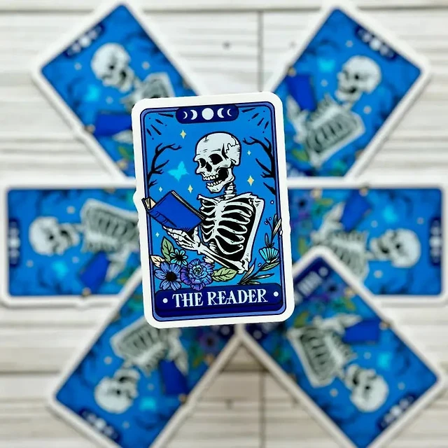 La pegatina de vinilo del lector de cartas del tarot de la rana