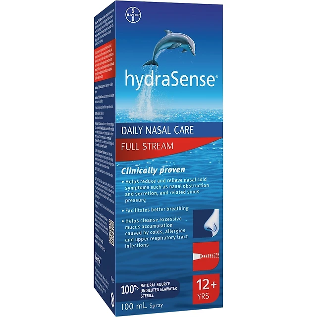 hydraSense Full Stream Nasal Spray, Daily Nasal Care, Fast Relief of Nasal Congestion, 100% Natural Source Seawater, Preservative-Free, 100 mL