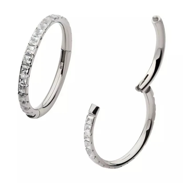 All Sides CZ Hinged Hoop Titanium
