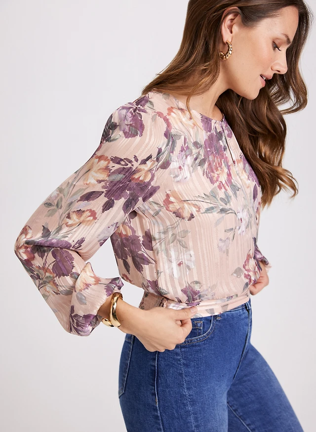 Metallic Flared Cuff Blouse