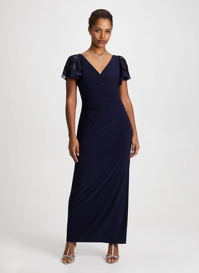 Sequined Wrap-Style Dress & Stone Teardrop Earrings