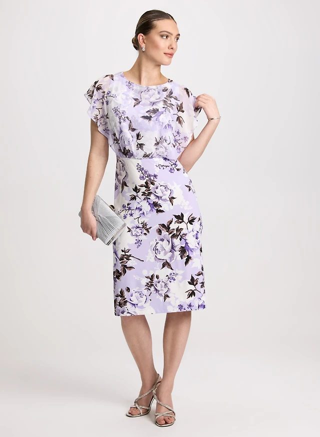Floral Print Dress & Cluster Detail Dangle Earrings