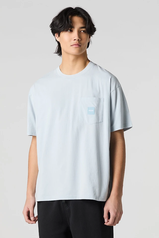 T-shirt délavé avec poche plaquée à imprimé URBN