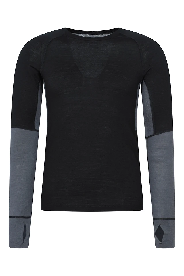 Panelled Mens Merino Longsleeve Round Neck Top
