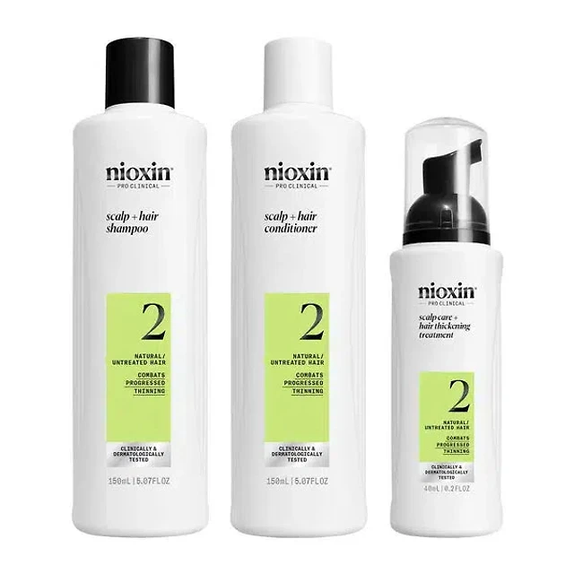Nioxin Scalp + Hair Thickening System 2 - for Natural Hair with Progressed Thinning - Includes Shampoo 150ml, Conditioner 150ml and Scalp Treatment 50ml