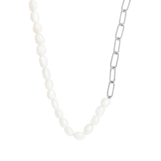 Men’s Necklace with 6MM White Synthetic Pearls in Stainless Steel