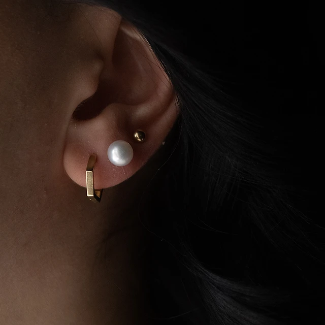 22MM Square Tube Sleeper Hoop Earrings in 10kt Yellow Gold