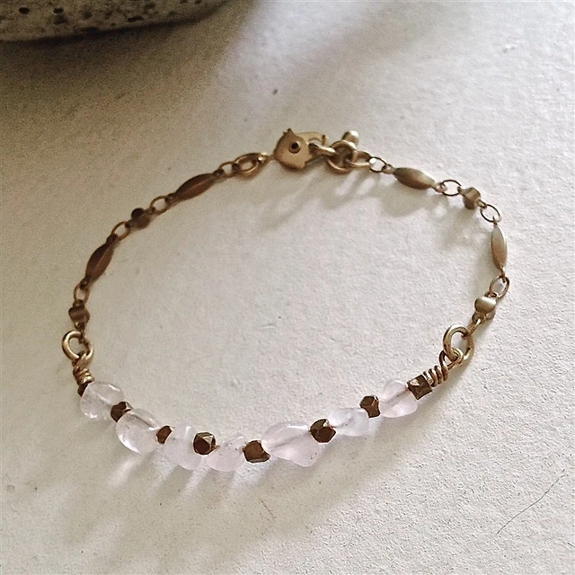 Indira Rose Quartz Ornate Brass Bracelet