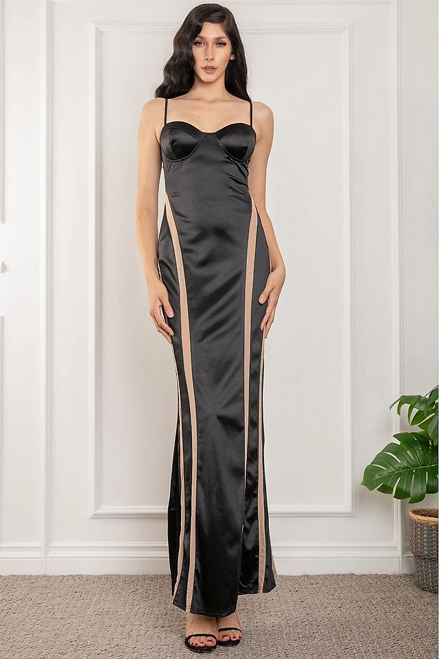 Ruched Sphaghetti Strap Mesh Midi Dress