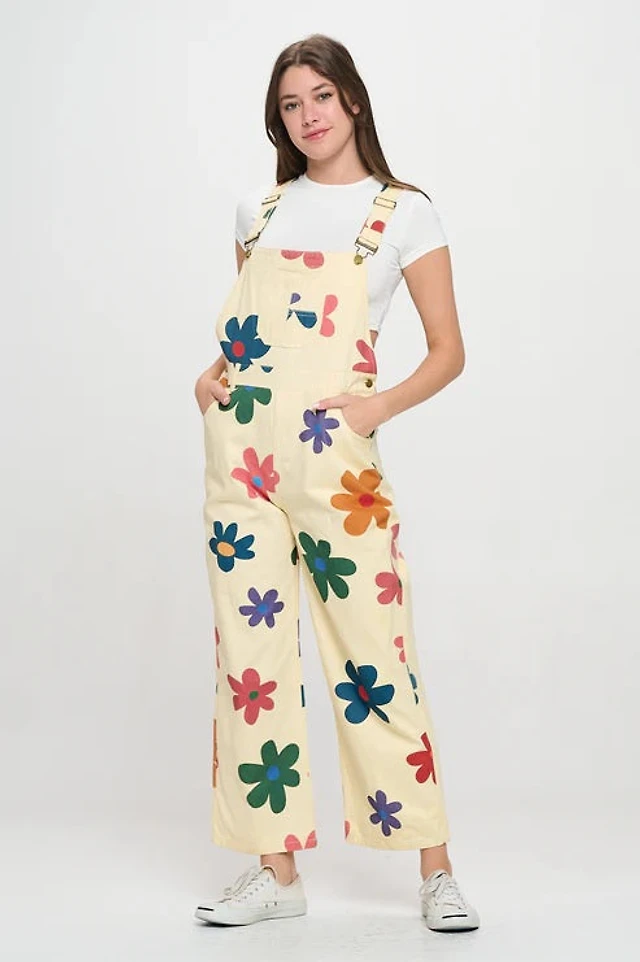 Colorful Daisy Print Overalls