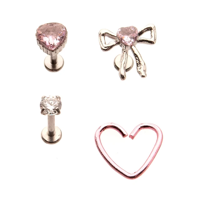 Multi-Pack Lovestruck Heart Dangle and Basic Nose Pins 6 Pack - 20 Gauge