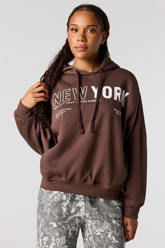 Haut carré à capuchon en molleton avec imprimé NY HD