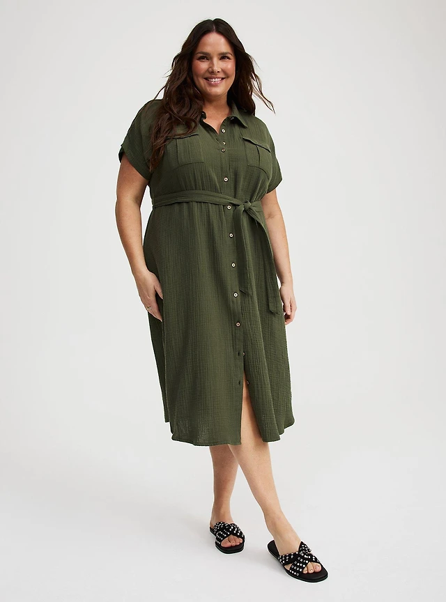 Midi Double Pucker Gauze Shirt Dress