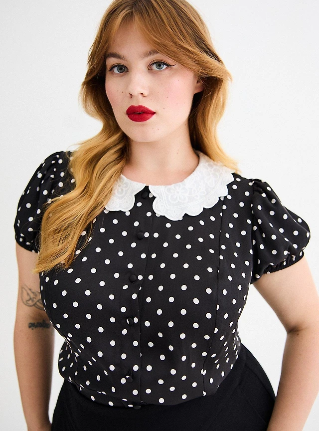 Retro Chic Lace Collar Blouse