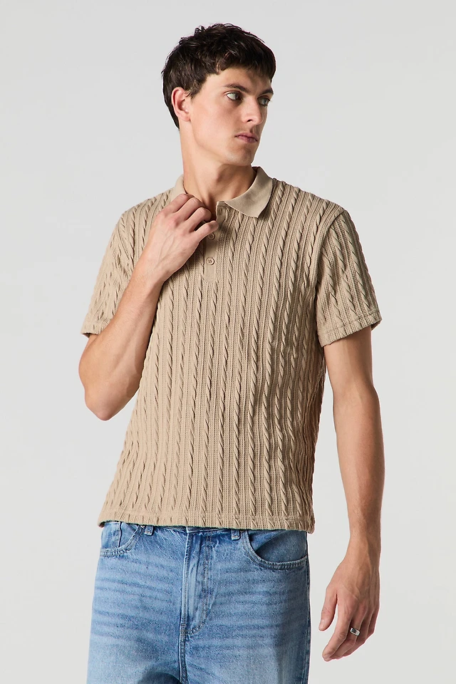 Cable Knit Polo Top