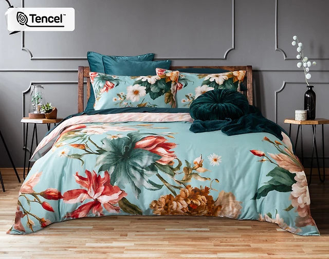 Della Duvet Cover, TENCEL Lyocell, Botanical, Green,