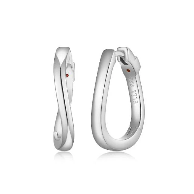 ELLE "Citadel" Rhodium Plated Cubic Zirconia Oblong Shape Hoop Earrings