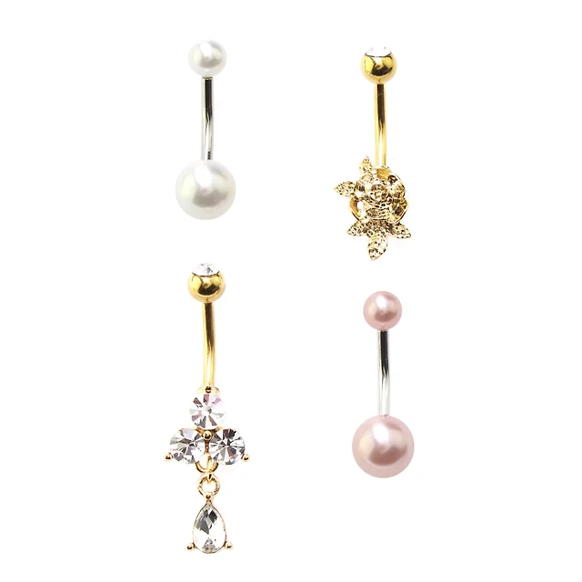 Multi-Pack Pink CZ Flower Glitter Belly Rings 4 Pack - 14 Gauge