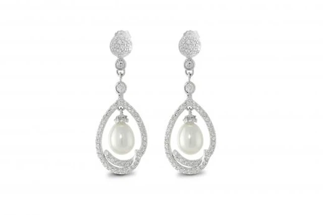 Sterling Silver 8-9mm Freshwater Pearl & Cubic Zirconia Earrings
