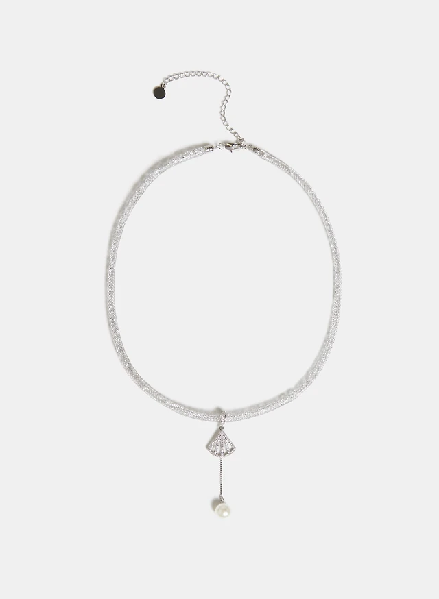 Three Strand Necklace with Mini Pearls and Bar Pendant