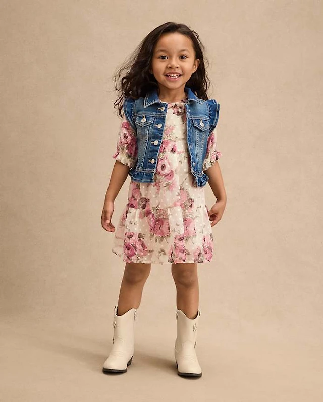 Girls Floral Pleated Tiered Dress 2-Piece Outfit Set - Homegrown by Gymboree