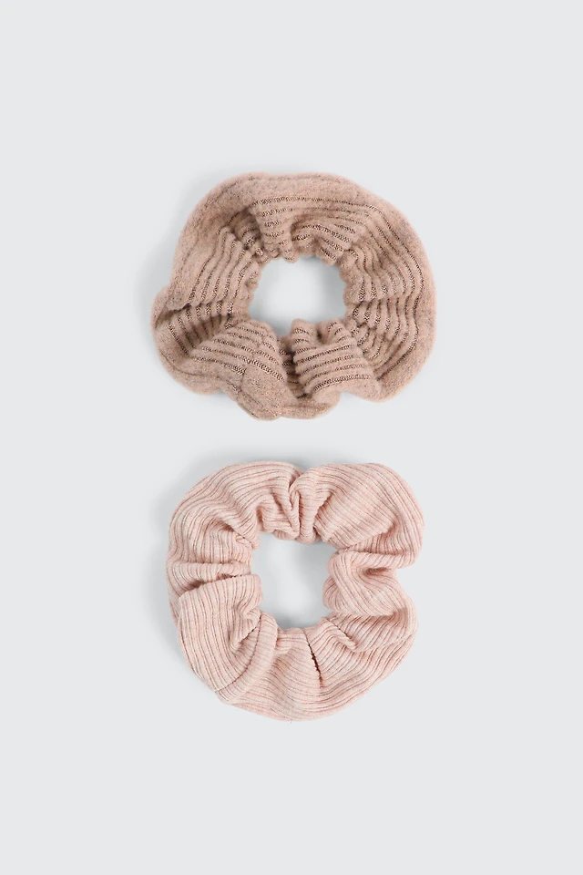 Ardene 2-Pack Super Soft Rib Scrunchies in Light Pink | Polyester/Elastane