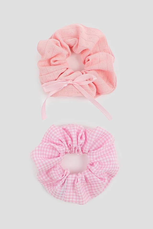 Ardene 2-Pack Gingham Scrunchies in Light Pink | Polyester
