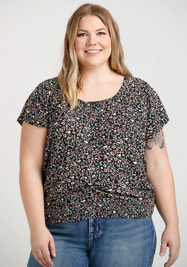 Ardene Textured Top with Bow detail in Black | Size Large | Polyester/Cotton/Elastane